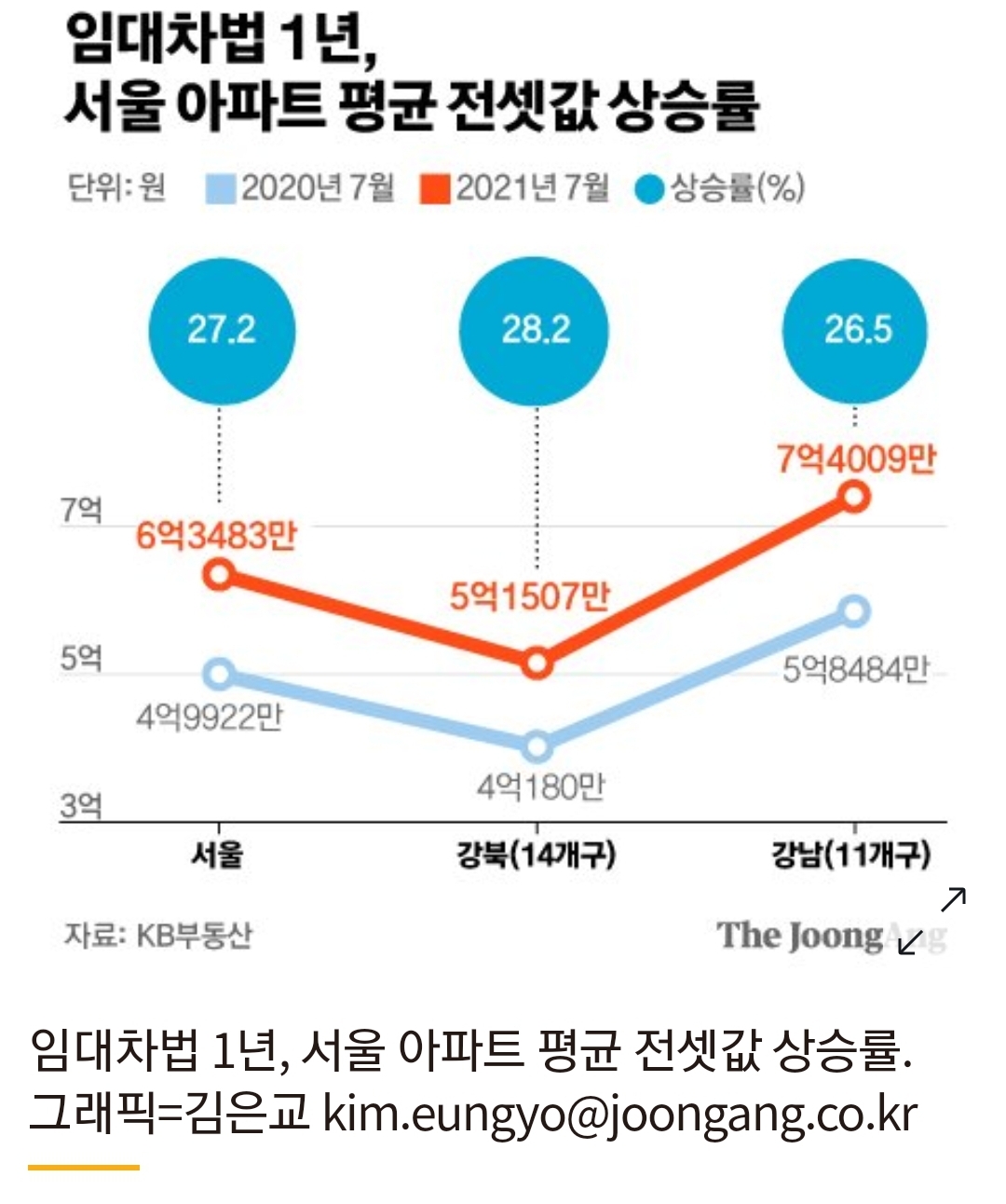 임대차법 1년, 서울 아파트 평균 전셋값 상승률. 그래픽=김은교 kim.eungyo@joongang.co.kr