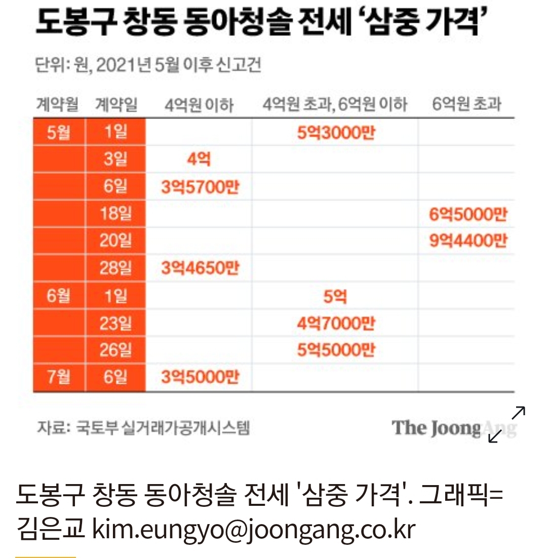도봉구 창동 동아청솔 전세 '삼중 가격'. 그래픽=김은교 kim.eungyo@joongang.co.kr