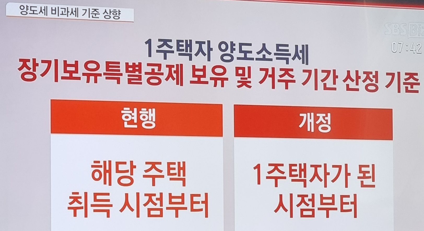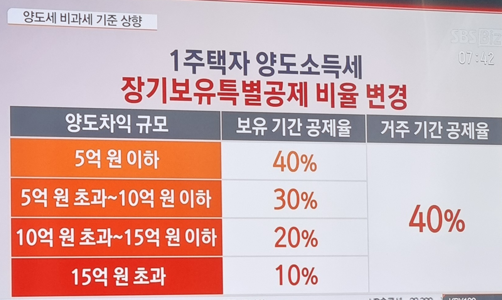 현재는 다주택자가 1주택만 남기고 모두 매각해 1주택자가 될 경우 남은 1주택에 대해 최초 취득 시점부터 보유·실거주 기간에 따라 최대 80%의 장기보유특별공제가 적용된다. 민주당은 8월 임시 국회에서 개정안을 통과시킬 방침이다.