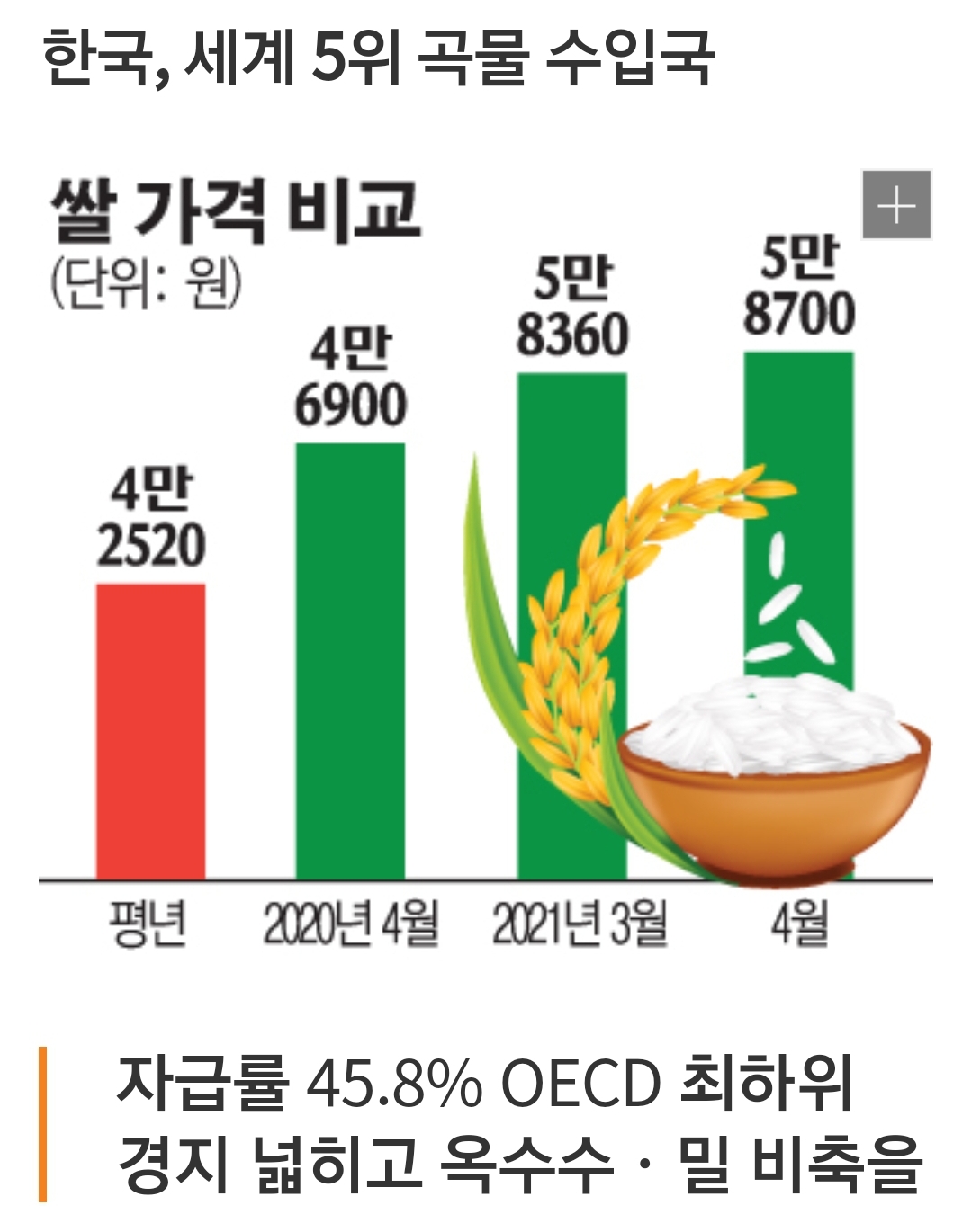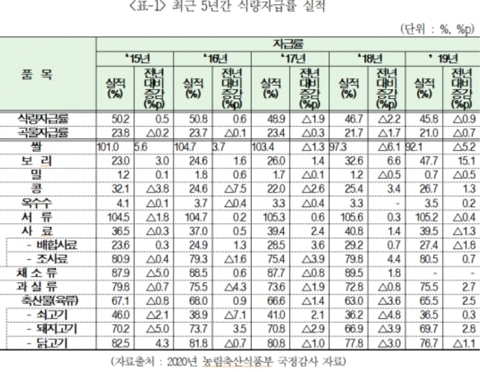 우리나라 식량자급률 45.8%