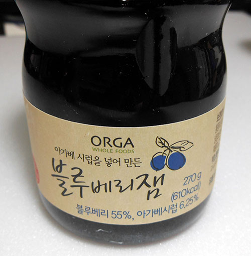 올가 블루베리잼에 블루베리가 15% 더 들어있다는걸 감안하고서도 오뚜기 블루베리쨈에 비하면 용량대비 가격이 3배가 넘는 가격이다. (야생 블루베리가 비싼가..)
